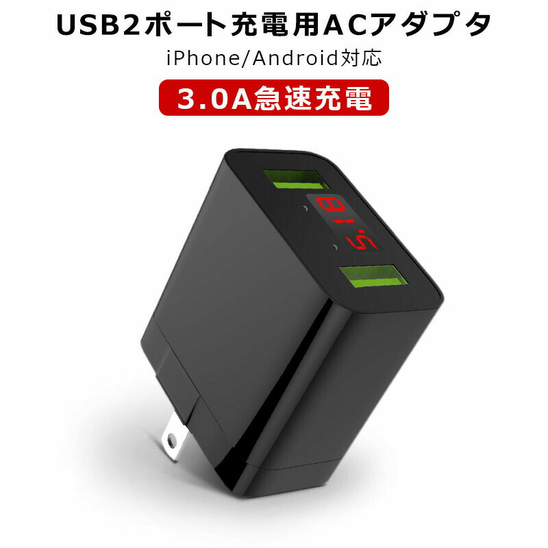 USB急速充電器 2ポート 急速充電器 USB充電器 折り畳み 2台同時 ACアダプター AC充電器 コンセント 急速充電 充電アダプタ 充電器 海外旅行 高速充電 高出力 USB タップ アダプター 電源タップ アイコス 充電 3.0A Type-C iPhone iPad アンドロイド ブラック ホワイト 黒 白