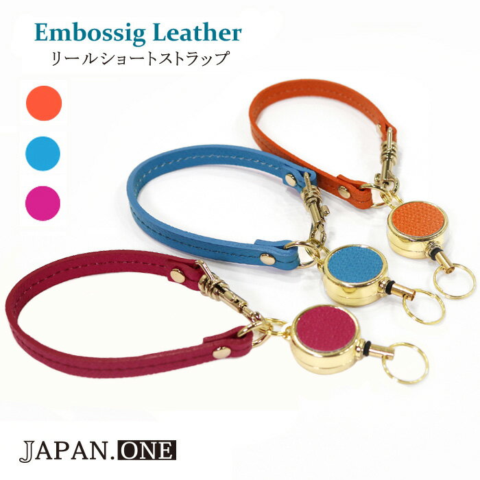 リール付きショートストラップ しぼ 型押しレザー 牛革 伸びる リール ストラップ キーホルダー 鍵 カギ おしゃれ メンズ レディース